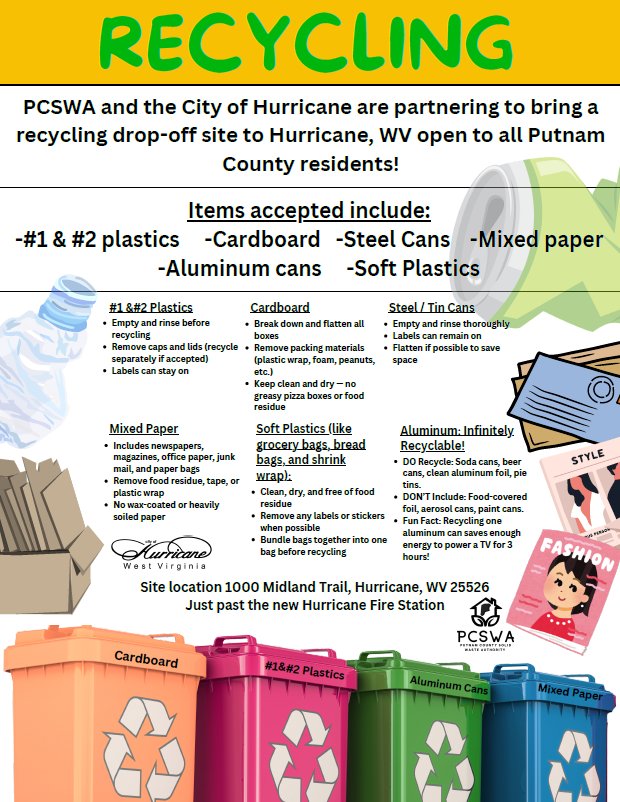 The Recycling Center is managed by the Putnam County Solid Waste Authority (PCSWA) and is open: